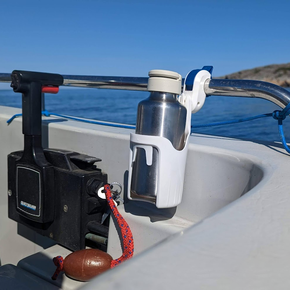 Securely store your beverages with the Railholder 70, a robust holder compatible with bottles, cans, mugs, and thermoses having a maximum diameter of 70mm. Its UV-resistant plastic construction ensures durability in various conditions.